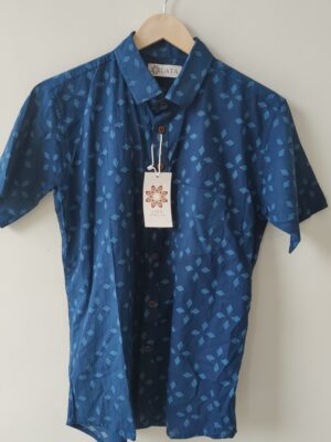 Green Base Yellow Floral Buti Printed Cotton Shirt